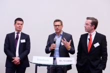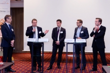 Am Ende des 1. Konferenztages dieskutierten Dr. Jürgen Cramer, SparkassenDirekt Versicherung AG, Dr. Edgar Martin, KRAVAG / R+V Versicherungsgruppe, sowie Harald Trautsch, Dolphin Technologies GmbH, Frank Sommerfeld, Towers Watson, und Marco Morawetz, General Reinsurance AG über die Frage der "Telematik-Tarife in K – Braucht das wirklich jemand oder müssen es alle haben?!".