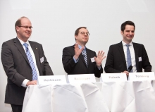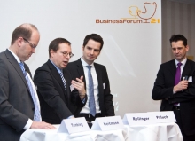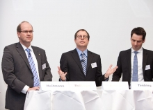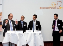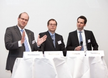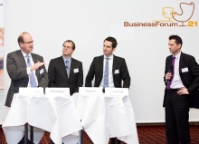 Kontroverse Themen über die aktuellen und zukünftigen Entwicklungen der Kraftfahrt-Sparte, sowie Chancen und Handlungszwänge, mit denen aktuell die Assekuranz konfrontiert wird, beherrschten die Podiumsdiskussion mit Klaus-Jürgen Heitmann, HUK-COBURG Versicherungsgruppe, Dr. Norbert Rollinger, R+V Versicherung AG, Dr. Michal Paluch, Simon Kucher & Partner und Dr. Jochen Tenbieg, SIGNAL IDUNA Gruppe.