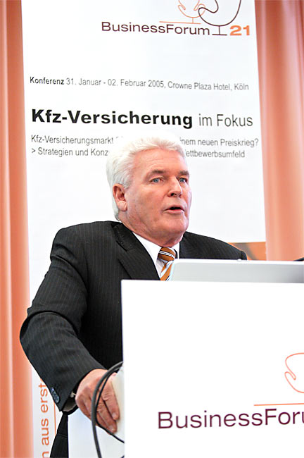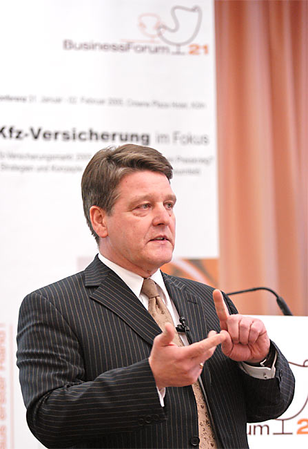 Prof. Dr. Wolfgang Meinig, Lehrstuhl für Automobilwirtschaft, Universität Bamberg, Leiter der Forschungsstelle Automobilwirtschaft (FAW) stellte die Frage: "Automobilhersteller und Versicherer - Kooperation oder Konfrontation?" und sprach über die Werkstatt-Kooperationen deutscher Kfz-Versicherer aus Sicht der Automobilhersteller.