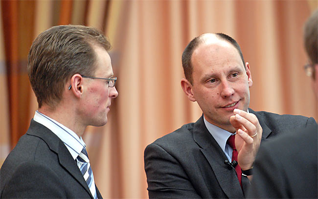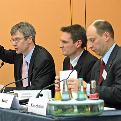 Referentengespräche: Theo Waber und Frank Küper im Gespräch am Rande der Konferenz.Helmut Kühl und Prof. Dr. Wolfgang Meinig