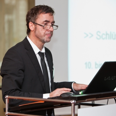 Dr. Jochen Niewerth, Hauptabteilungsleiter Schadenmanagement, VKB referierte zum Thema "Schneller als der Sturm - Klimawandel und resultierende Anforderungen an die Versicherungswirtschaft".