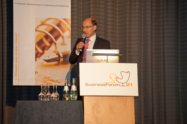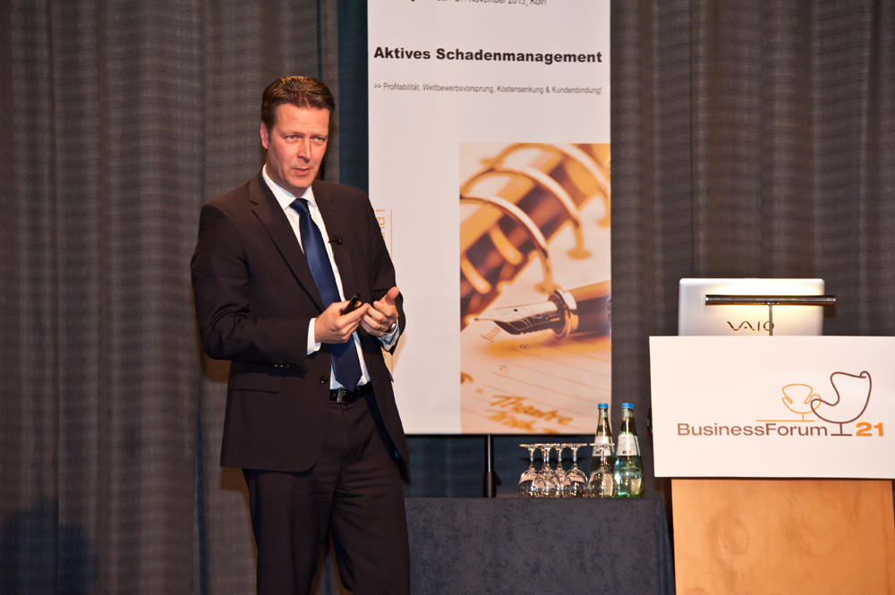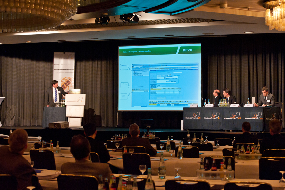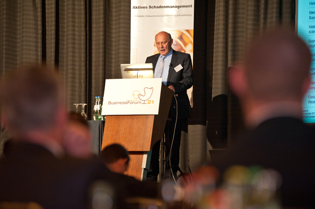 Begrüßung durch BusinessForum21 und den Vorsitzenden Professor Horst Müller-Peters, Forschungsstelle Versicherungsmarkt, Institut für Versicherungswesen an der Fachhochschule Köln, der durch das Fachprogramm des ersten Tages führte.