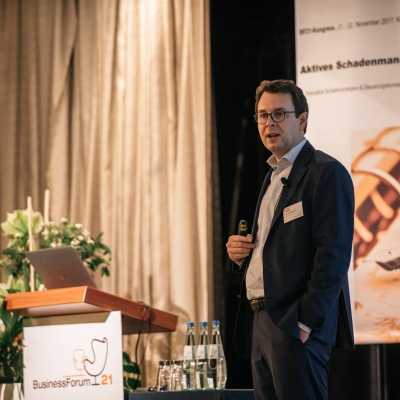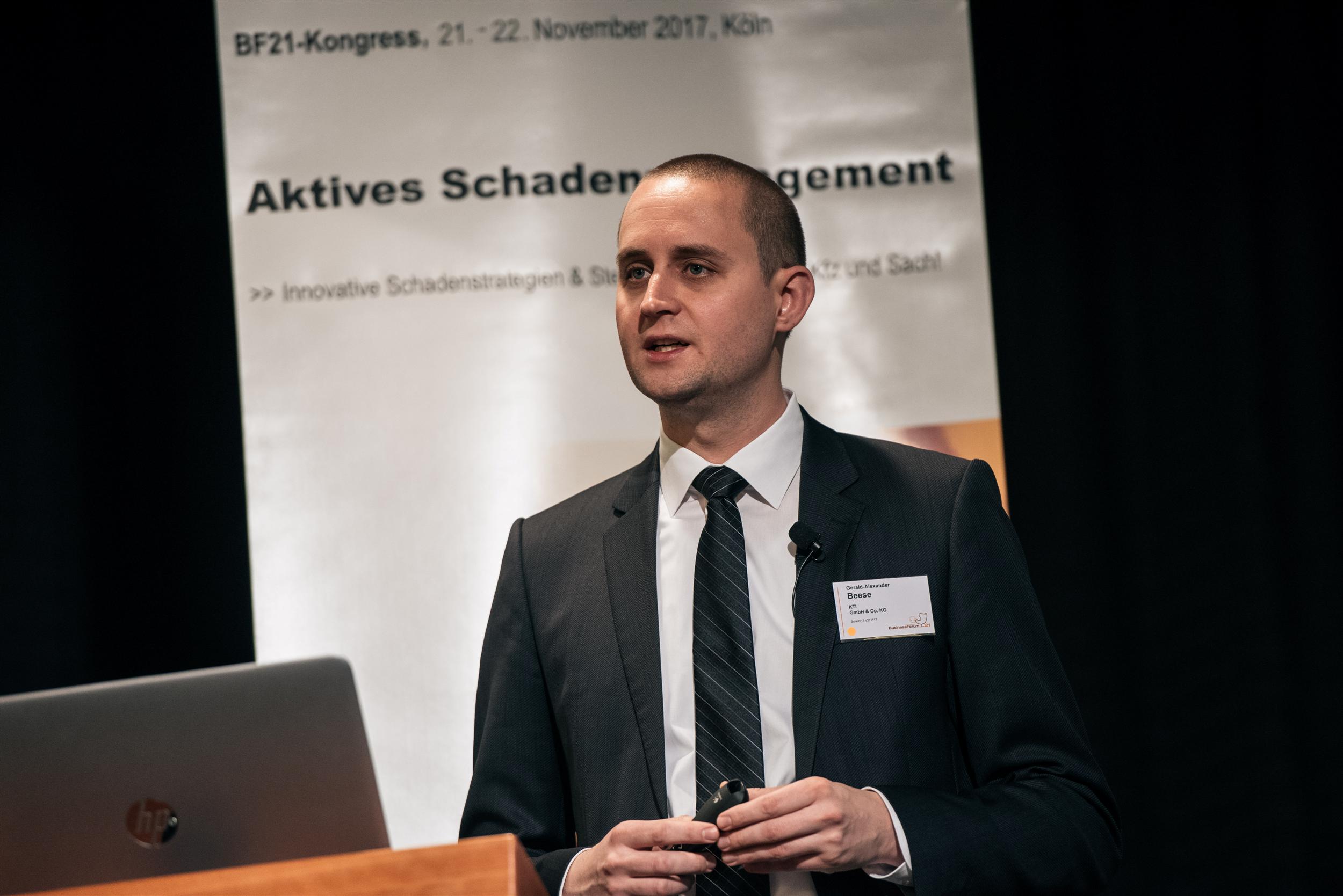 Björn Hinrichs, Sales Director Versicherungen, Geschäftsbereich Risk Management, Arvato Financial Solutions sprach in seinem interessanten Vortrag über die Schadenbearbeitung à la Amazon.