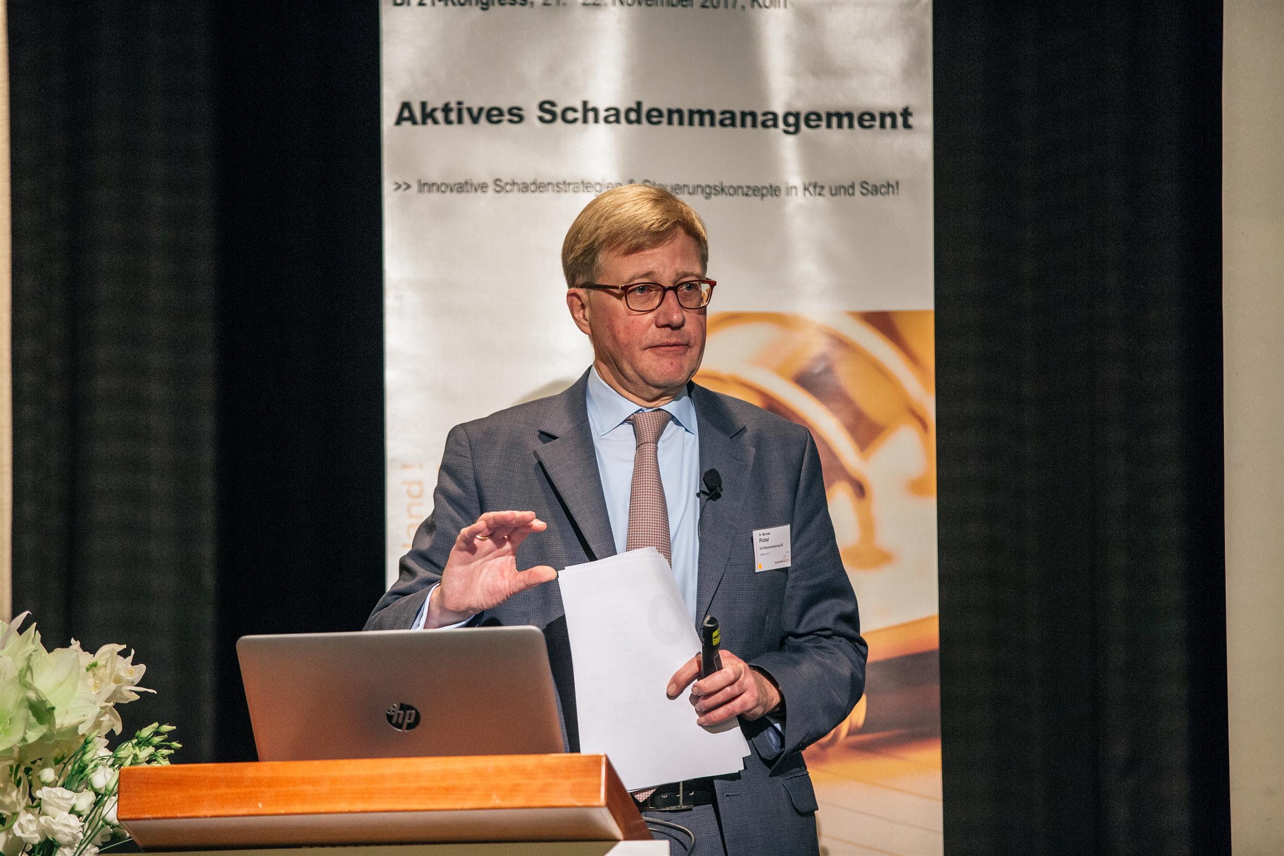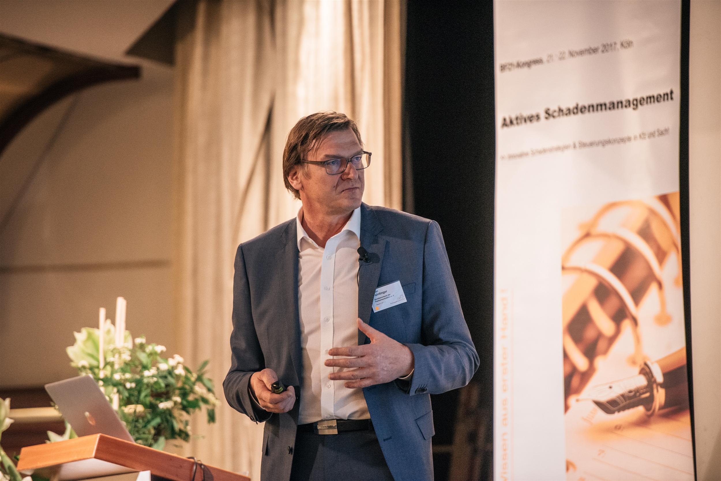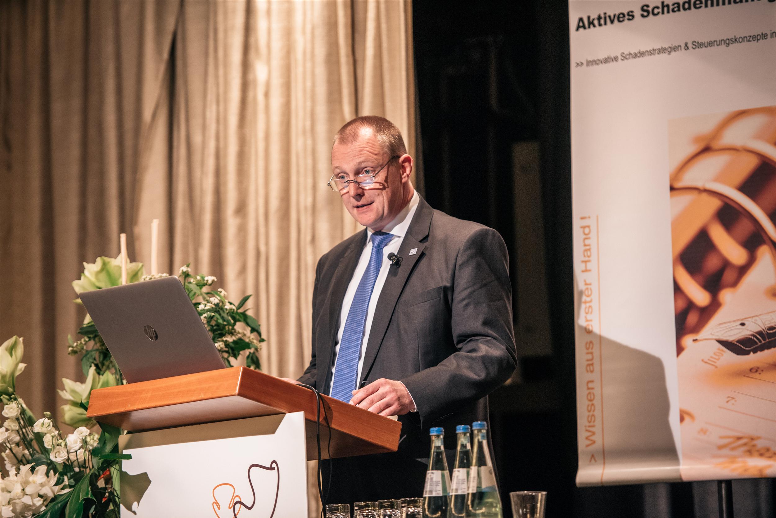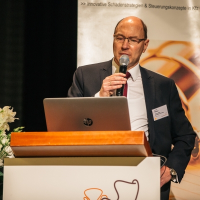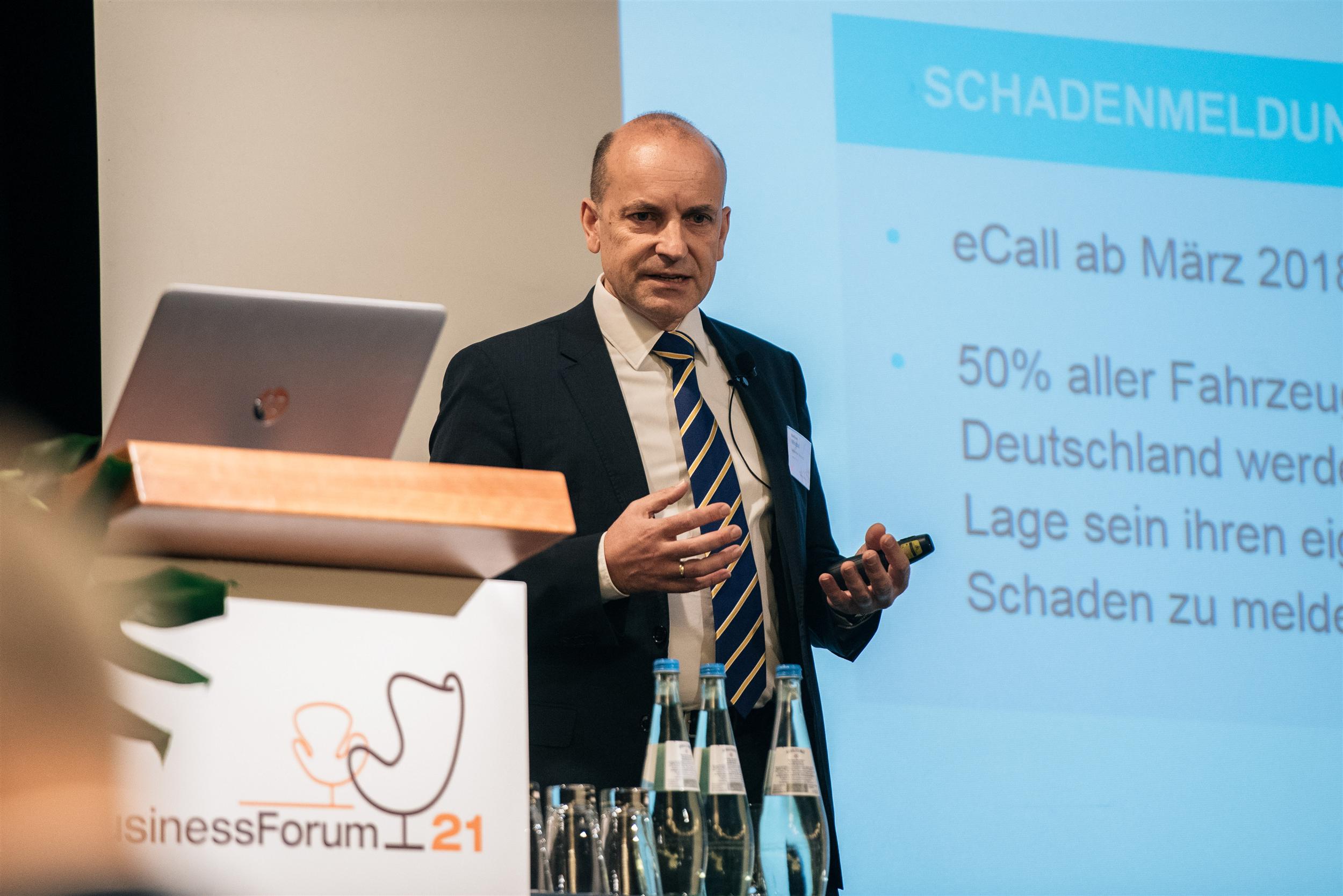 Peter Börner, Vorstand, Eurogarant AutoService AG erläutert die Anforderungen der Reparaturbetriebe an Marktveränderungen der Versicherer und Autohersteller im digitalen Zeitalter.