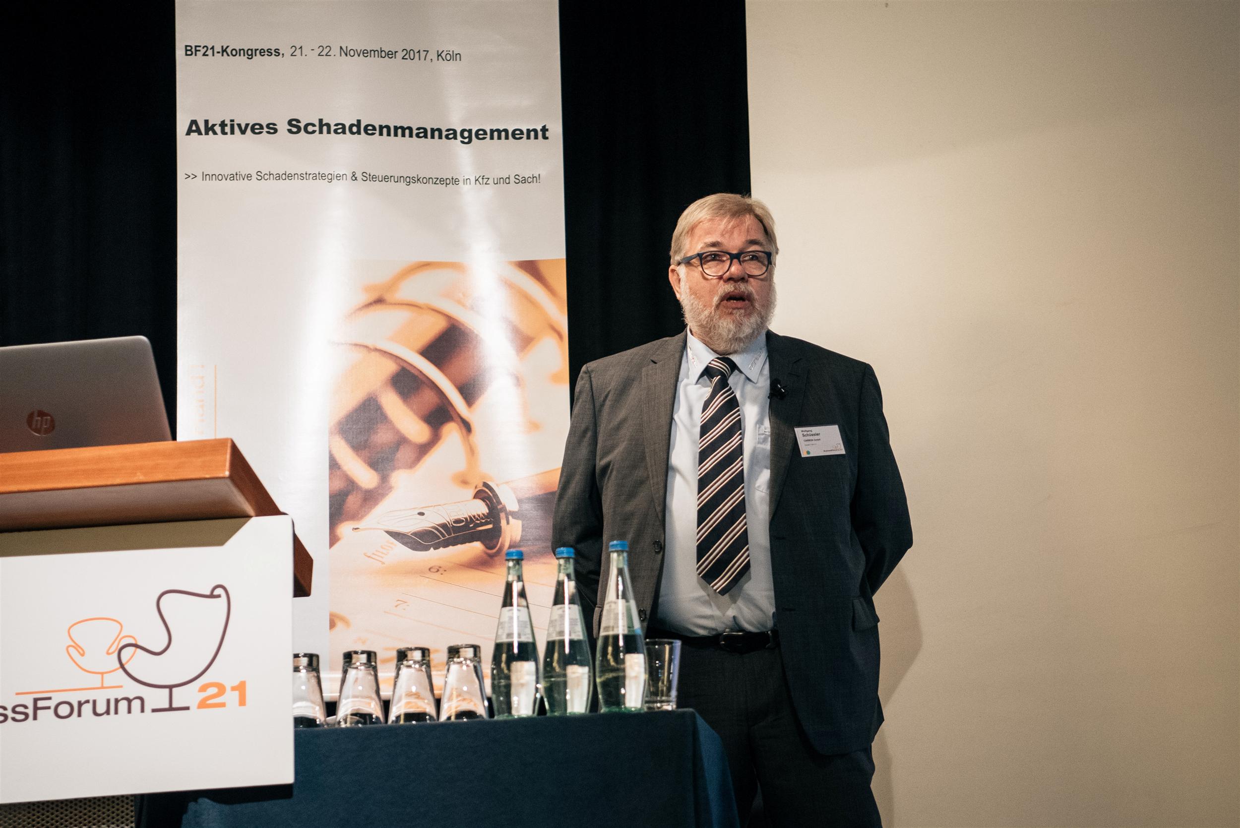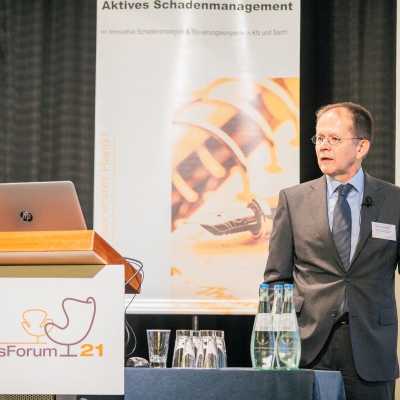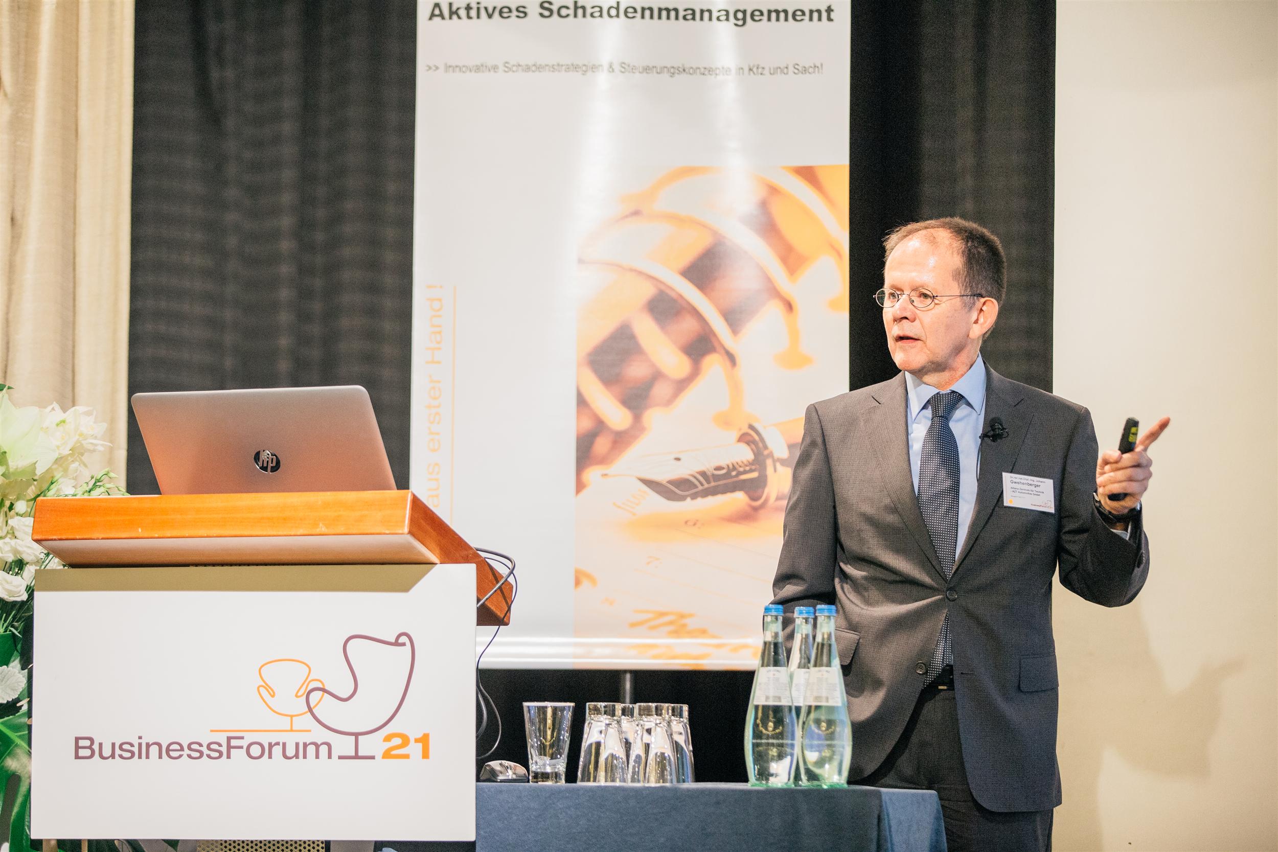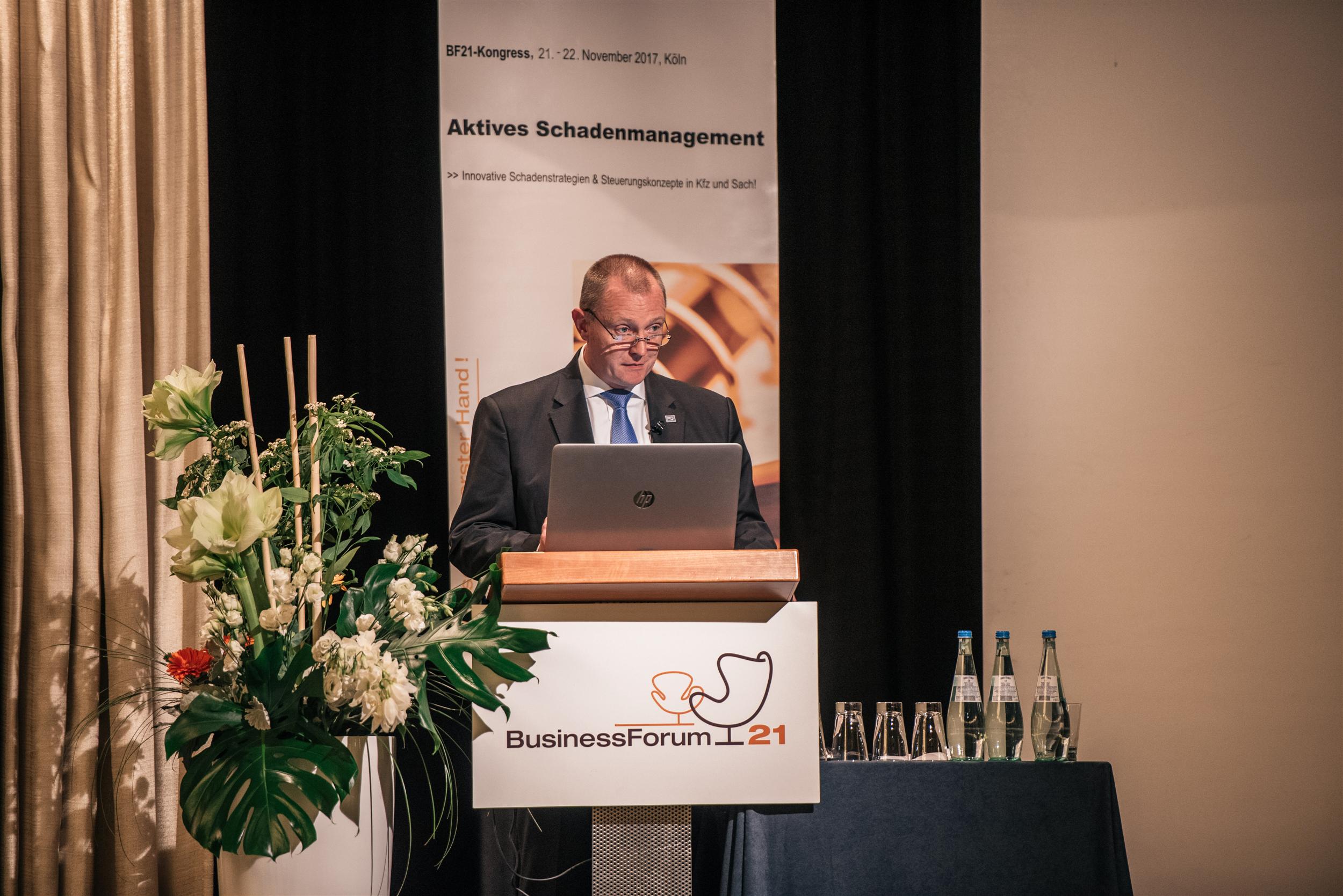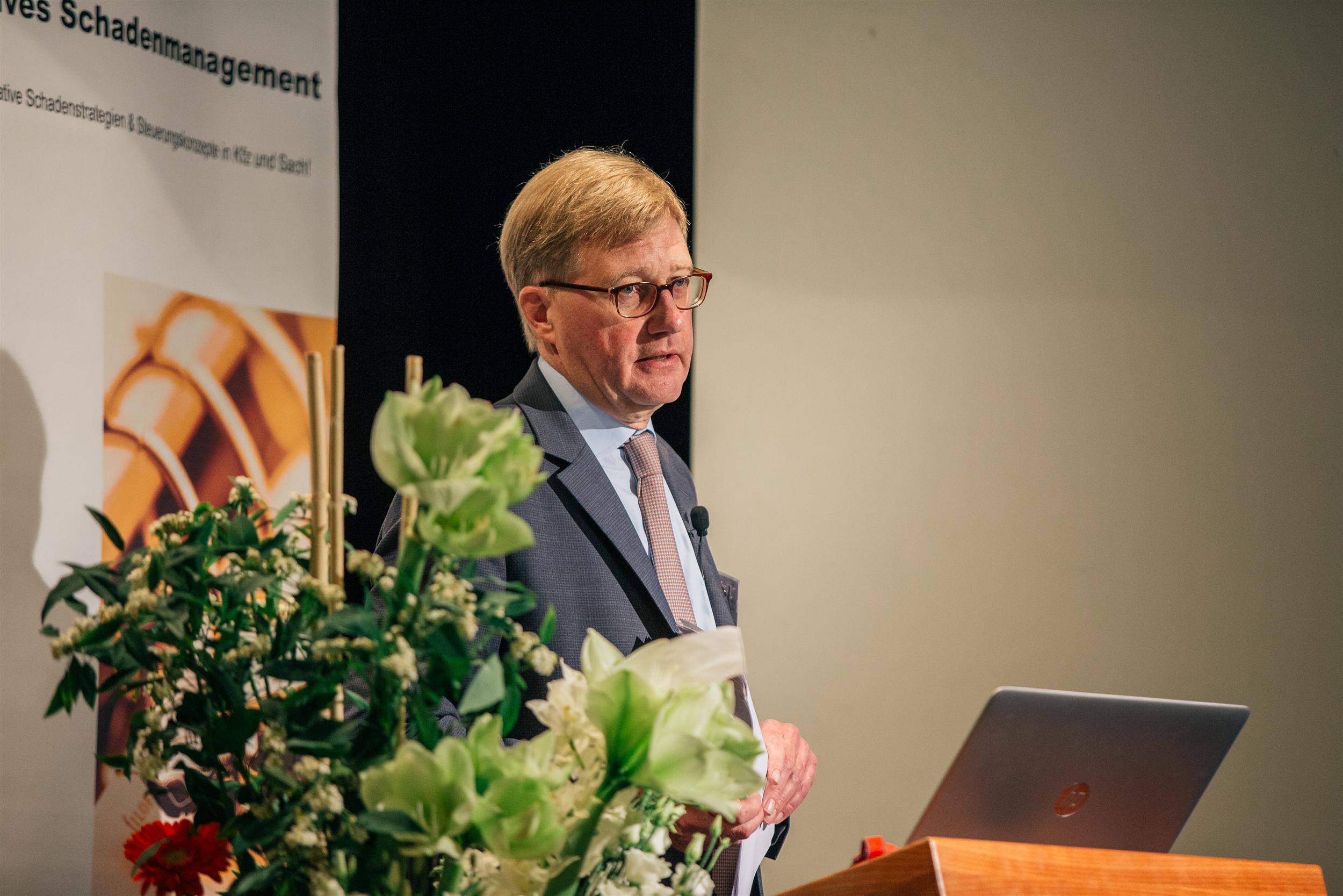 Peter Börner, Vorstand, Eurogarant AutoService AG erläutert die Anforderungen der Reparaturbetriebe an Marktveränderungen der Versicherer und Autohersteller im digitalen Zeitalter.