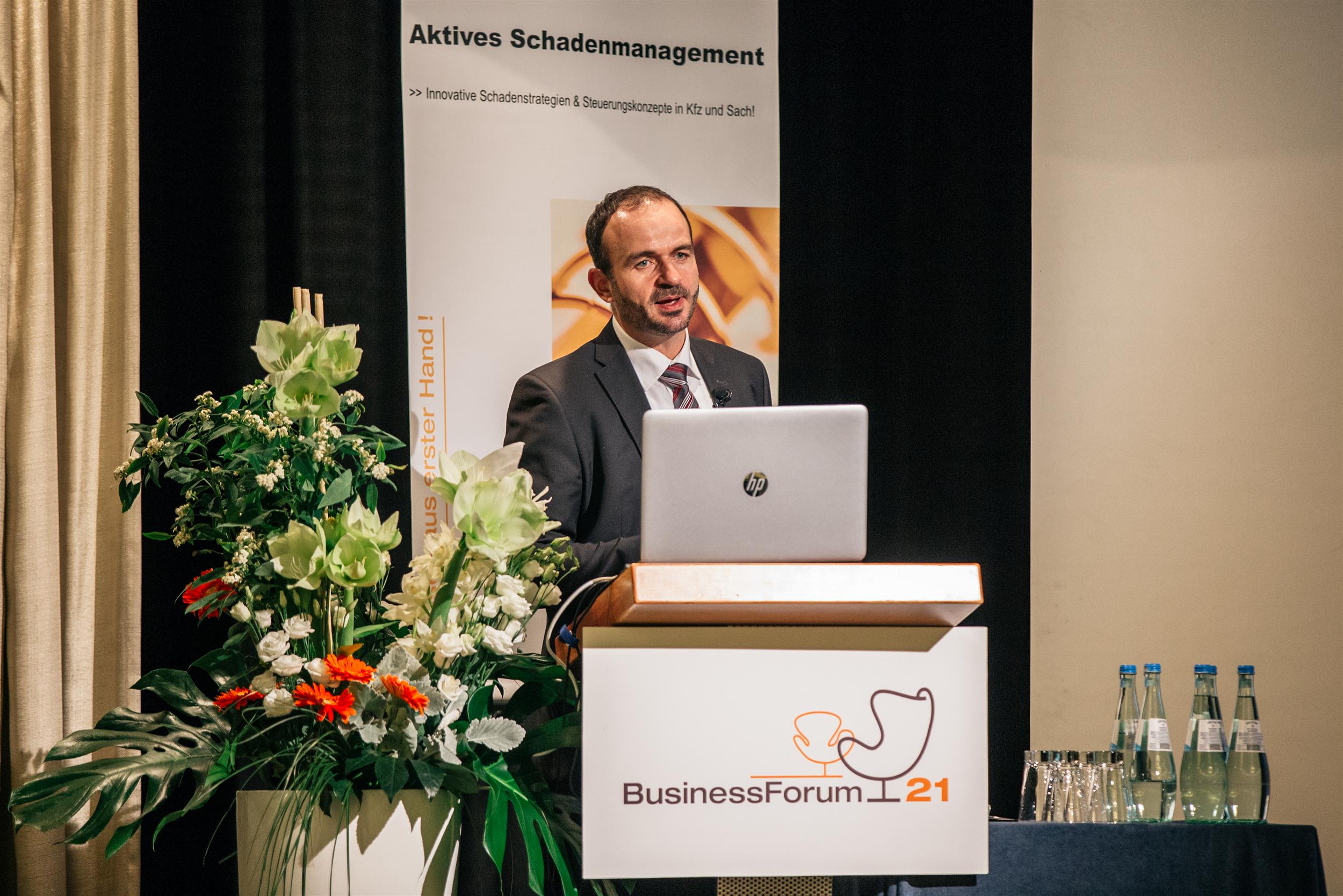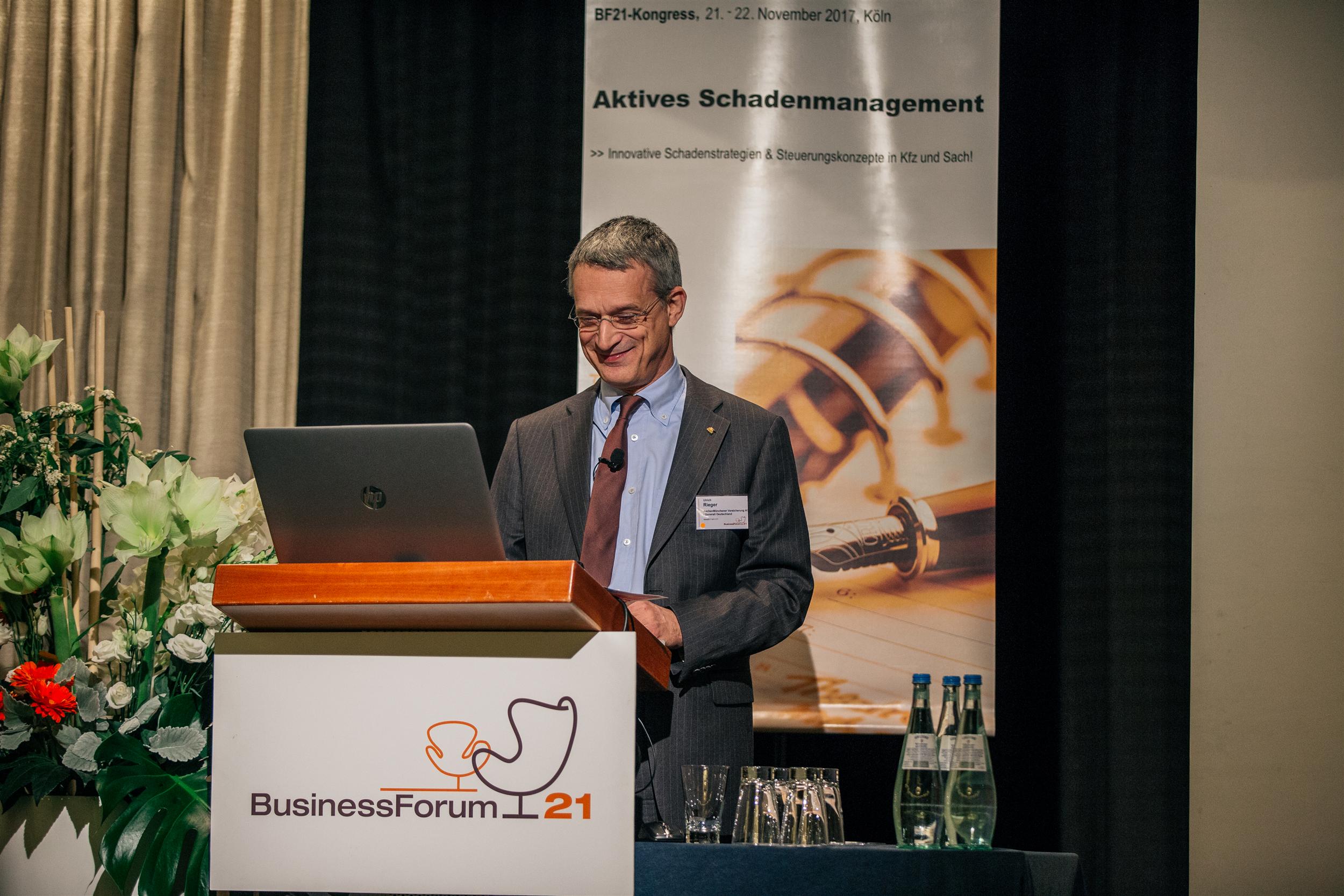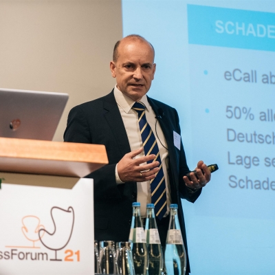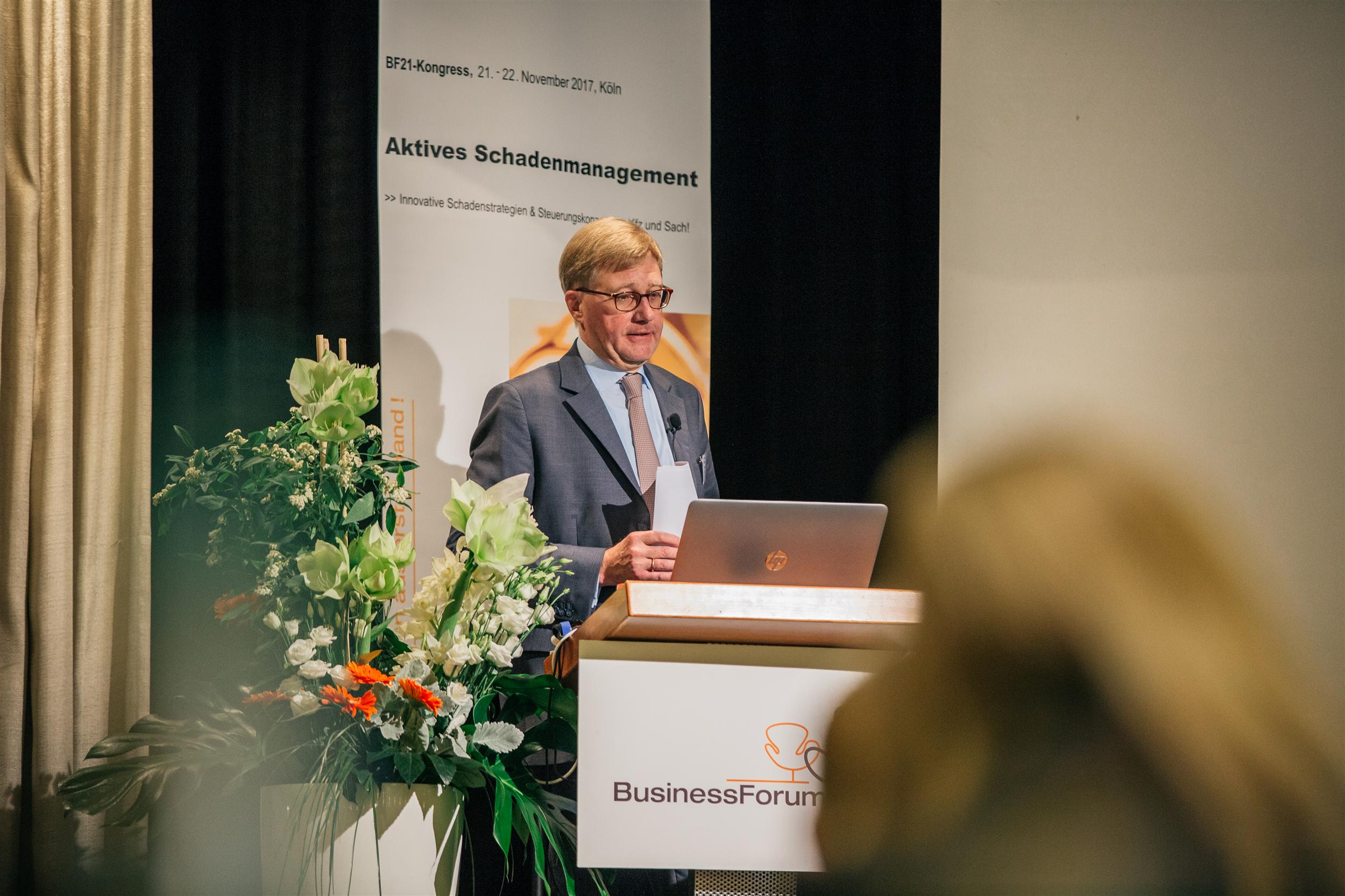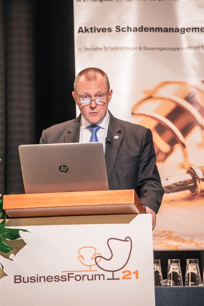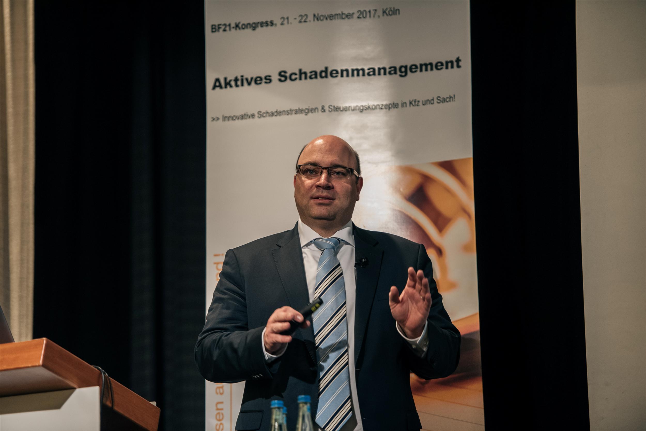 Peter Börner, Vorstand, Eurogarant AutoService AG erläutert die Anforderungen der Reparaturbetriebe an Marktveränderungen der Versicherer und Autohersteller im digitalen Zeitalter.