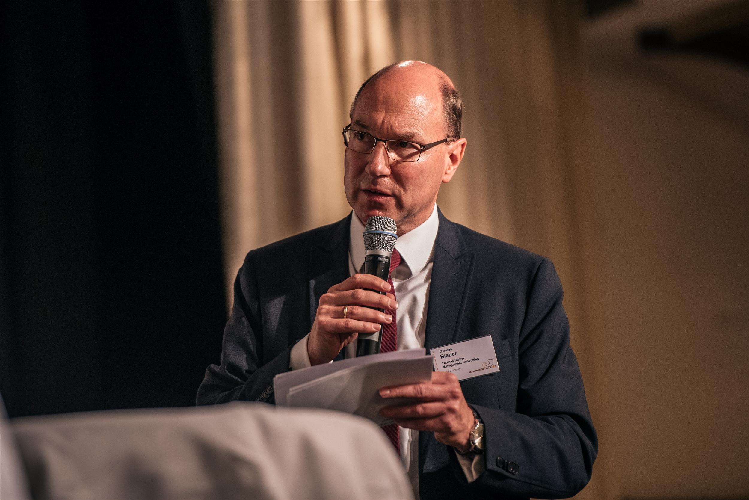 Begrüßung durch BusinessForum21 und den Vorsitzenden Thomas Bieber, Thomas Bieber Management Consulting, der durch das Fachprogramm der Konferenz führte.