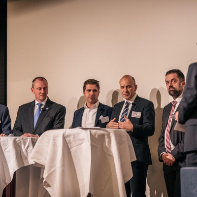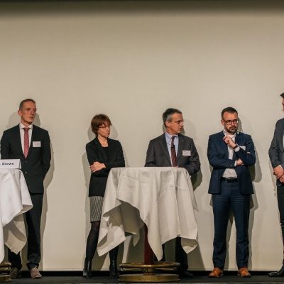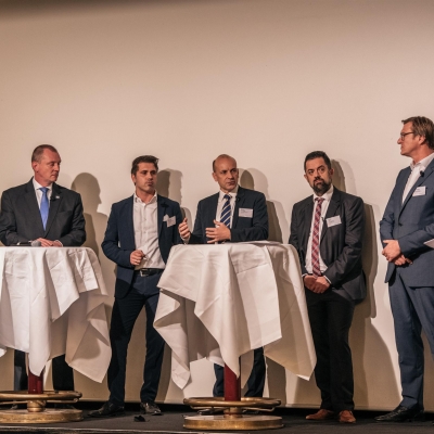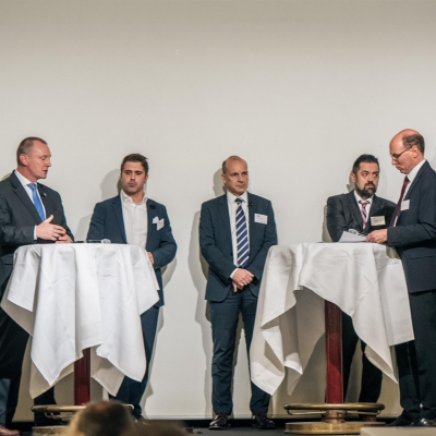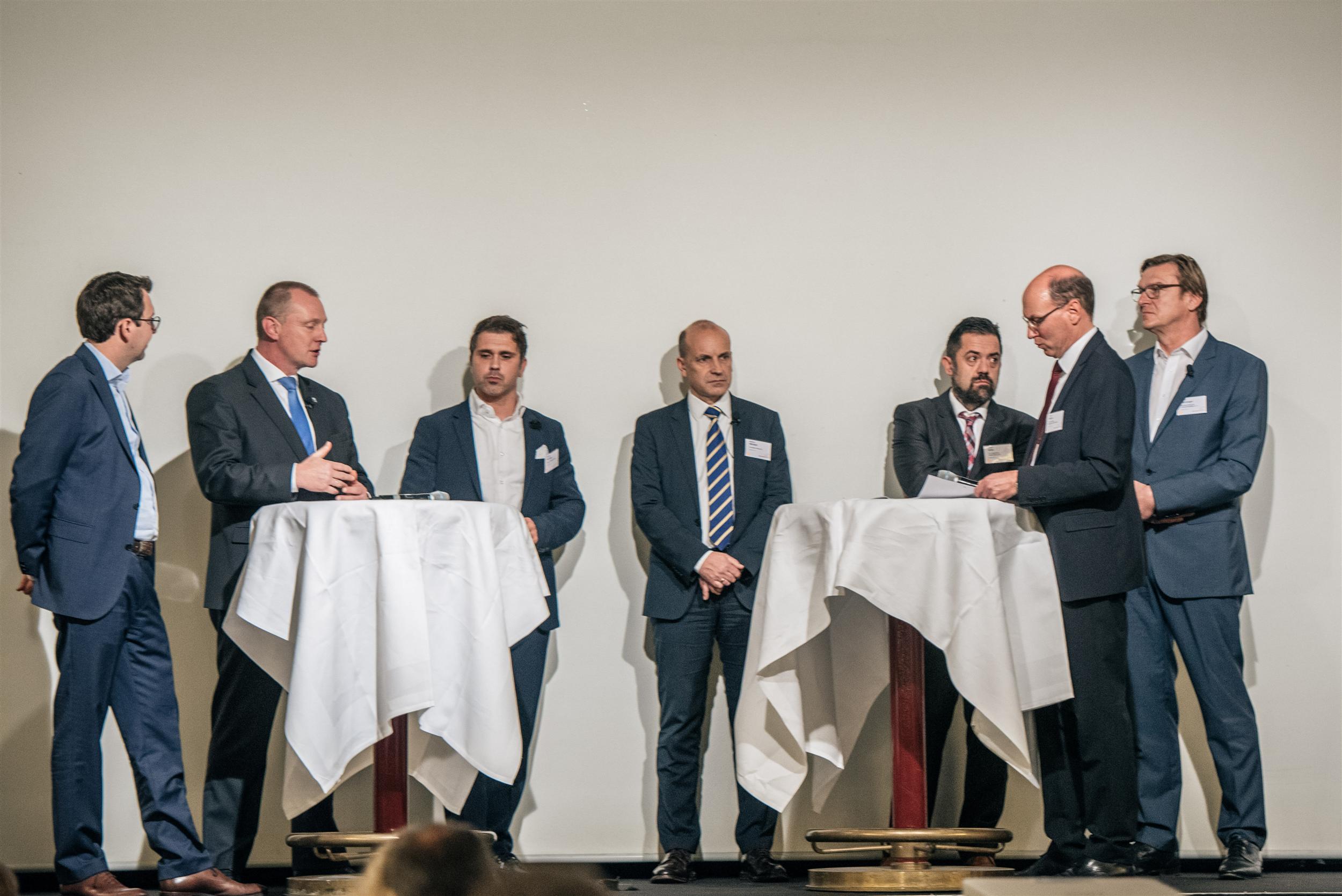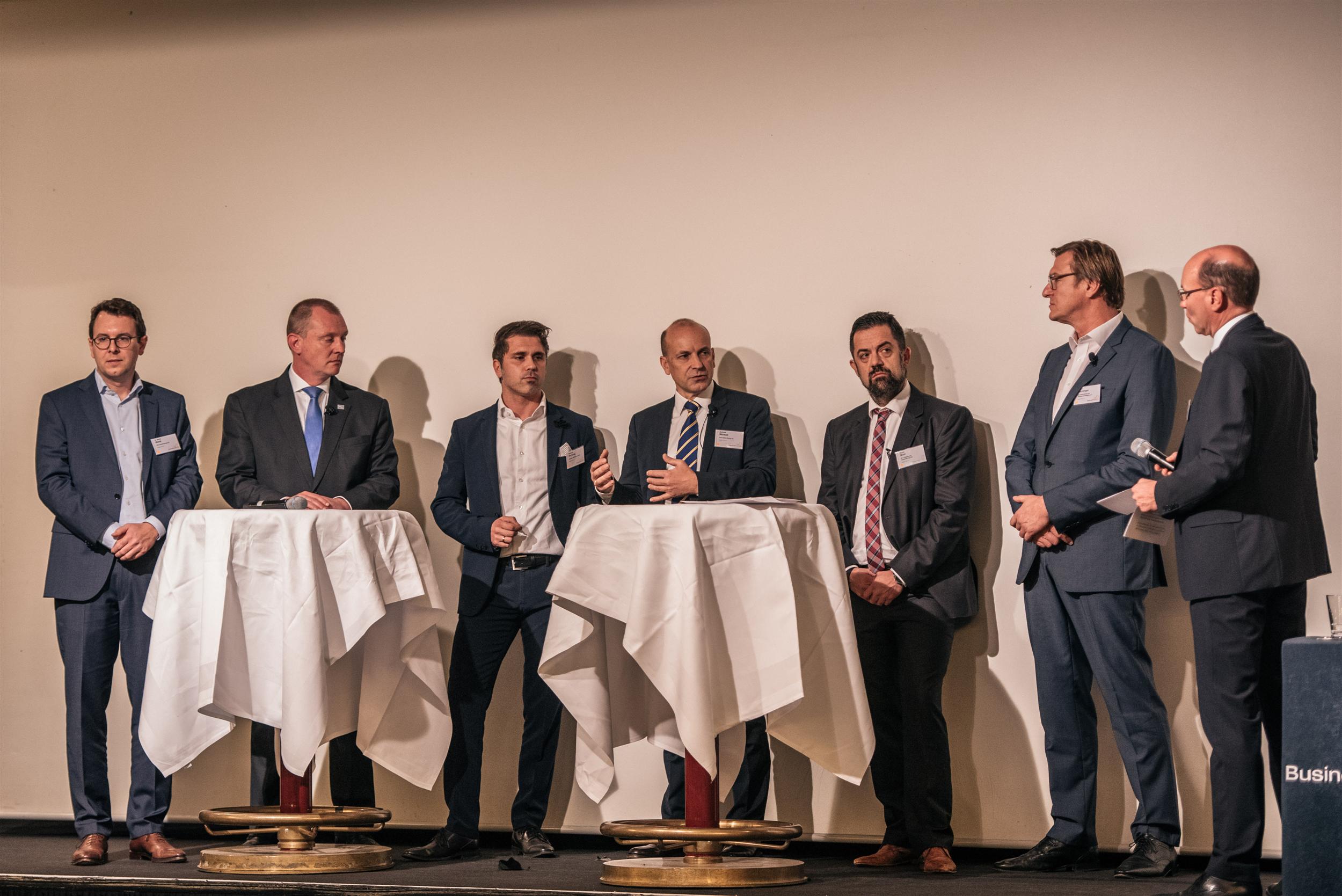 Bei der Podiumsdiskussion diskutierten Dr. Martin Weldi, HDI, Matthew Whittal, Innovation Group, Robert Paintinger, BVdP e.V., Peter Börner, ZKF e.V., Alexander Hornung, hepster und Rainer Grim, R+V über „The Next Big Thing im Schaden! - „Kundennähe, Innovationsfähigkeit, Digitalisierung, Prozesseffizienz, Service- & Kostenorientierung.