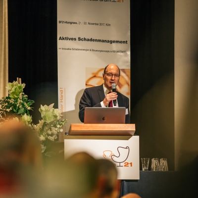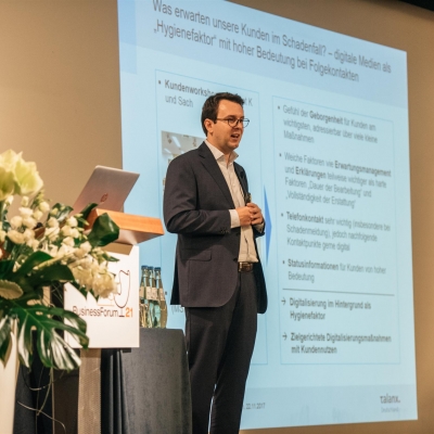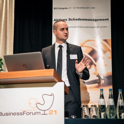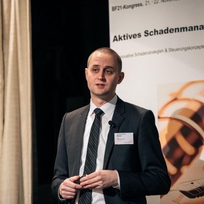 Zu Beginn des zweiten Konferenztages referierte Dr. Martin Weldi, Leiter Kraftfahrt Schaden, HDI Versicherung AG über den zielgerichteten Einsatz digitaler Medien im Schadenprozess und über Erfahrungen aus Anwendungsbeispielen.