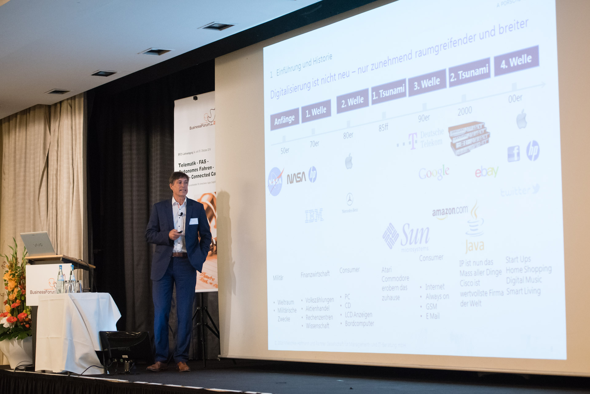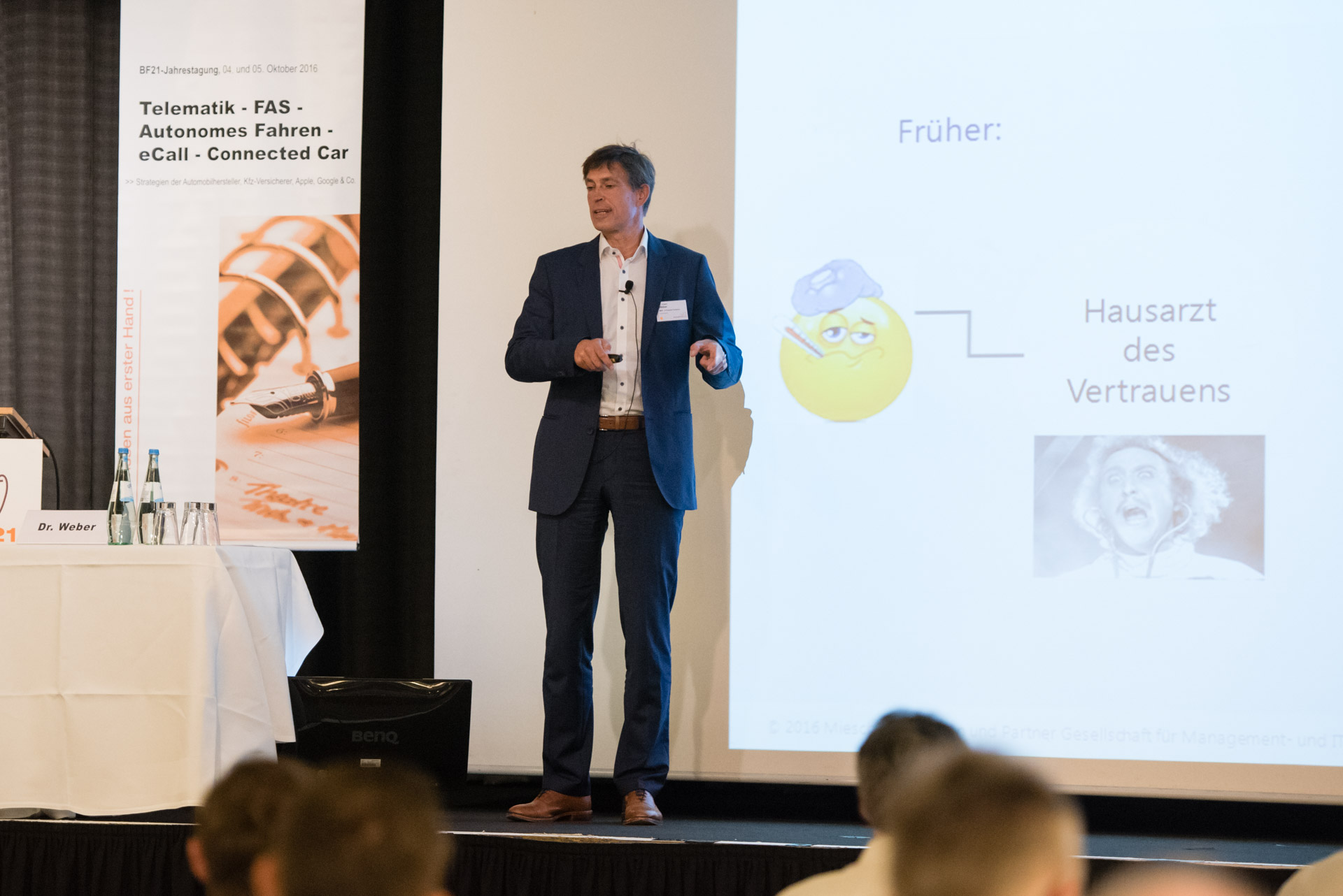 Dr. Jürgen Weber, Partner bei MHP - Porsche Konzern sprach über die Herausforderungen der OEM und der Versicherungsindustrie im Einklang der Digitalisierung und der Kundenausrichtung.