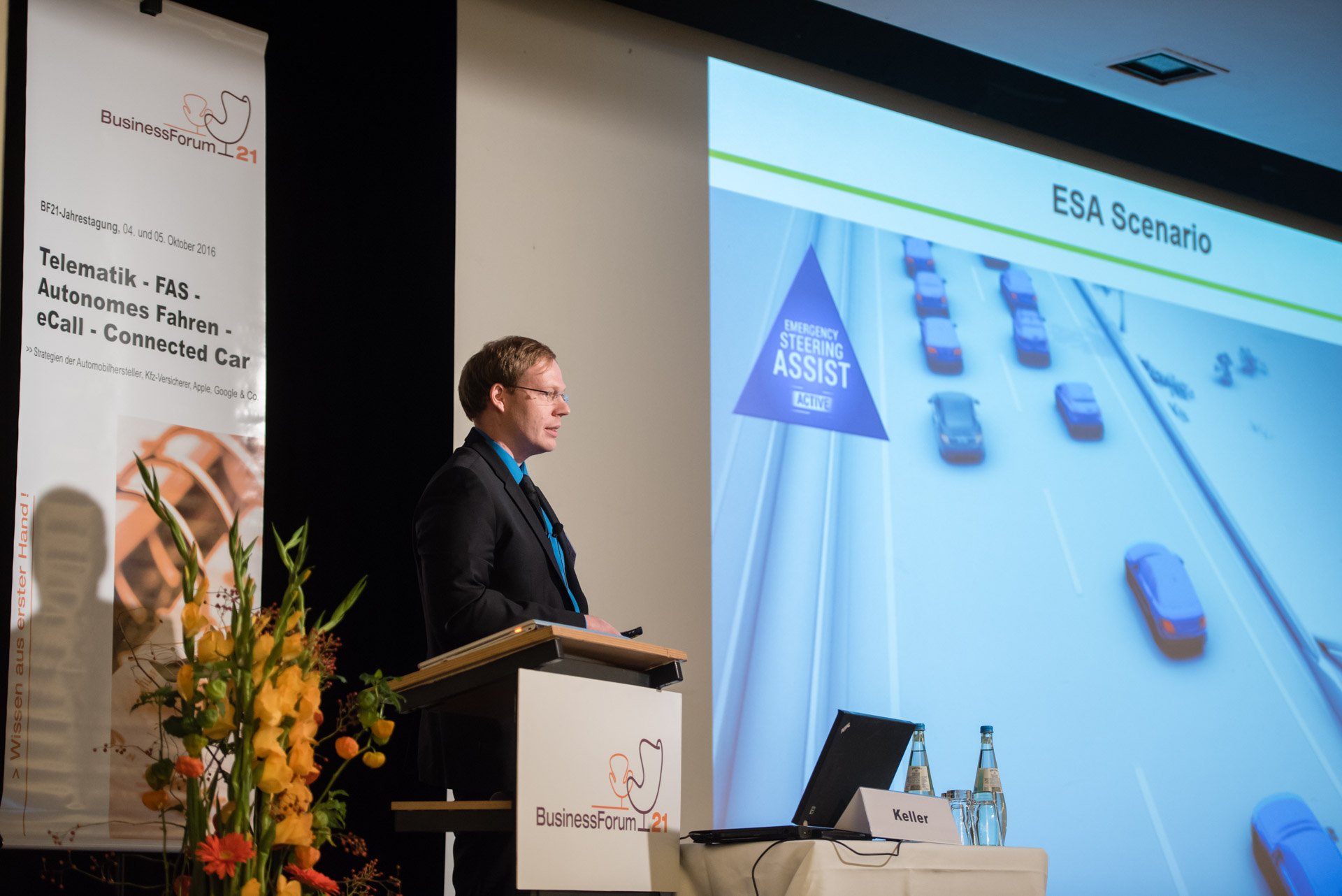 Dipl.-Ing. Martin Keller, wissenschaftlicher Mitarbeiter am Lehrstuhl für Regelungssystemtechnik an der TU Dortmund sprach über „Assistiertes Notausweichen - Die Alternative zur Notbremsung".