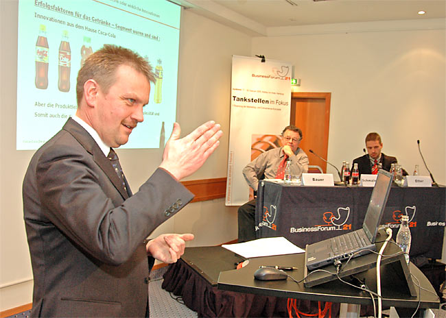 Zum Thema „Alkoholfreie Getränke – Wachstumsperspektiven in einem durch die Verpackungsverordnung sehr schwierigen Markt“, referierte Johannes Schmalenstroer, Nationaler Verkaufsleiter Convenience-Business, Coca-Cola Deutschland Verkauf GmbH & Co. KG.